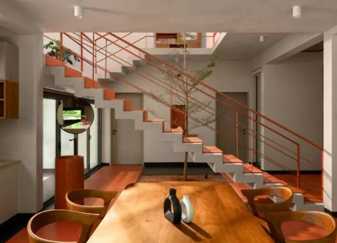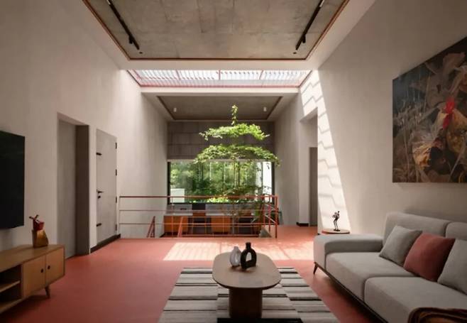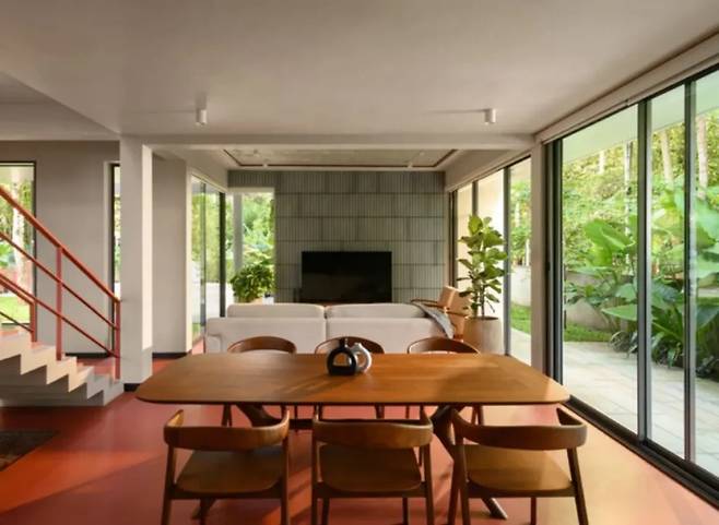 나무 향기가 가득한 이곳에서 가장 눈에 띄는 것은 현대적이고 대담한 구조가 자연과 조화를 이루며 부드럽게 자리 잡고 있는 모습입니다. 이 집의 진정한 매력은 주변 환경과 어우러지며 조화를 이루려는 점에서 찾을 수 있습니다. ‘소속감’을 핵심 철학으로 삼아, 집이 나무와 빛과 함께 숨 쉴 수 있도록 설계되어 건축과 자연이 서로를 존중하며 공존하도록 만들었습니다.
