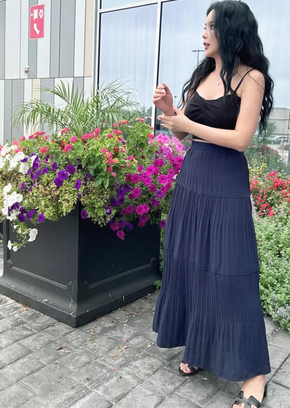 어깨끈이 얇게 디자인돼 한층 더 시원하고 가녀린 분위기를 자아내며, 깔끔한 네크라인이 전체적인 룩에 단정함을 더했다.