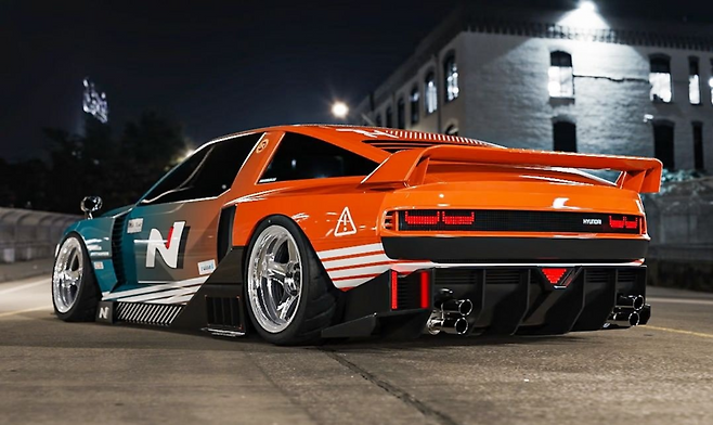 인스타그램 계정 @bradbuilds을 통해 공개된 N 비전 74는 친환경 파워트레인을 버리고 LS 구동 포뮬라 드리프트(Formula Drift) 레이싱카로 변신했다. 이 차량은 수소 파워트레인이 아닌 LS 모터로 교체했으며, V8 엔진으로 탑재했다.
