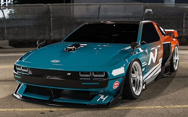 인스타그램 계정 @bradbuilds을 통해 공개된 N 비전 74는 친환경 파워트레인을 버리고 LS 구동 포뮬라 드리프트(Formula Drift) 레이싱카로 변신했다. 이 차량은 수소 파워트레인이 아닌 LS 모터로 교체했으며, V8 엔진으로 탑재했다.