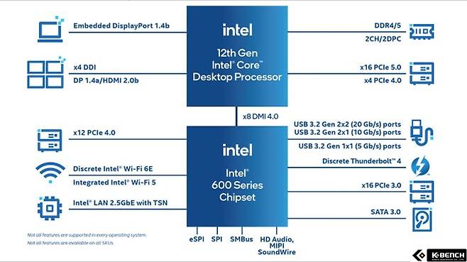 최신 12세대 인텔 엘더레이크 CPU 제품은 단일 CPU로서 다양한 기능을 지원한다. 대표적으로 처음으로 DDR5를 지원하기도하고 PCIe 5.0을 지원하기도 한다.