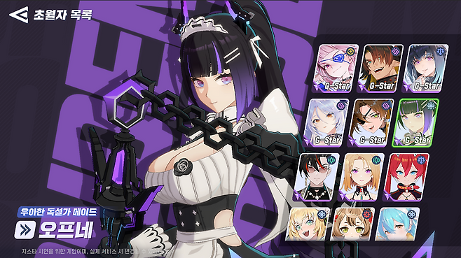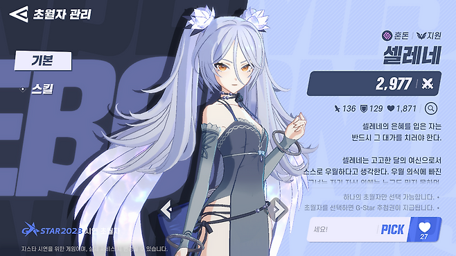 지스타 시연에서는 다양한 초월자들을 미리 체험해볼 수도 있습니다. 공개된 캐릭터는 14종이고, 로비와 초월자 목록 화면에서 모션과 스킬 등을 구경할 수 있습니다. 현장에서는 흥미 있는 초월자에게 투표할 수 있는 ‘초월자 PICK!’ 이벤트도 진행됩니다.
