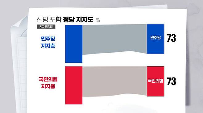양당 지지층의 3/4 정도인 73%는 현재 지지 정당에 그대로 투표하겠다고 답했습니다.