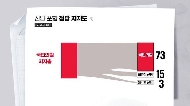 국민의힘 지지 응답자에서는 15%가 이준석 신당으로, 3%는 이낙연 신당 지지 의향을 밝혔습니다.