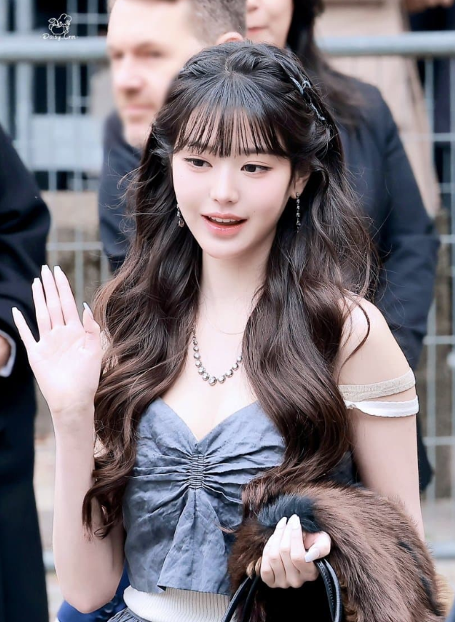 헤어스타일은 머리를 땋은 스타일링으로 공주님처럼 우아하면서도 사랑스러운 분위기를 연출했습니다. 미우미우의 걸리시하고 로맨틱한 브랜드 감성과 완벽하게 어울리는 헤어였으며, 자연스럽고 부드러운 땋은 머리는 장원영 님의 청순하고 여성스러운 매력을 강조해주었습니다.