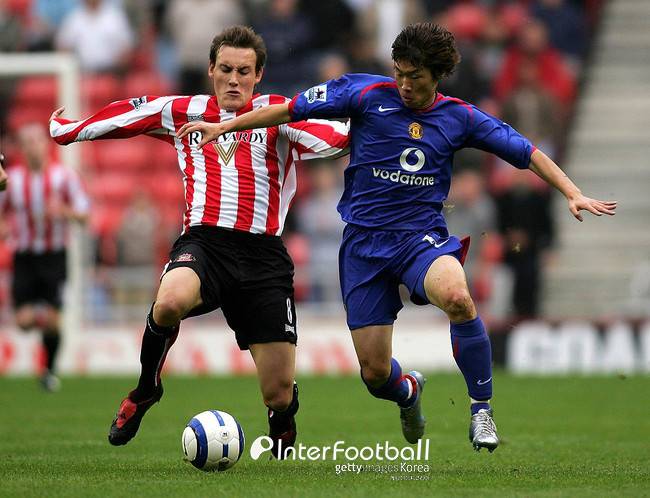 2005-06시즌 PSV 아인트호벤을 떠나 맨유에 입단한 박지성은 파란색 어웨이 유니폼을 입었었다.