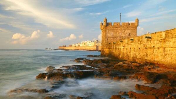 대서양 연안에 위치한 에사우이라는 모로코에서 가장 아름다운 해변 도시 중 하나입니다. 18세기에 지어진 이 도시는 유럽식 요새 도시의 모습을 간직하고 있어 독특한 매력을 자랑해요. 하얀색 건물과 파란색 창문이 조화를 이루는 풍경이 인상적입니다.