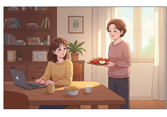 스스로 할 수 있다는 점을 전하면서도, “도움 주시려는 마음은 감사해요”라고 덧붙이면 부모님의 마음을 존중하는 방식이 될 수 있습니다.