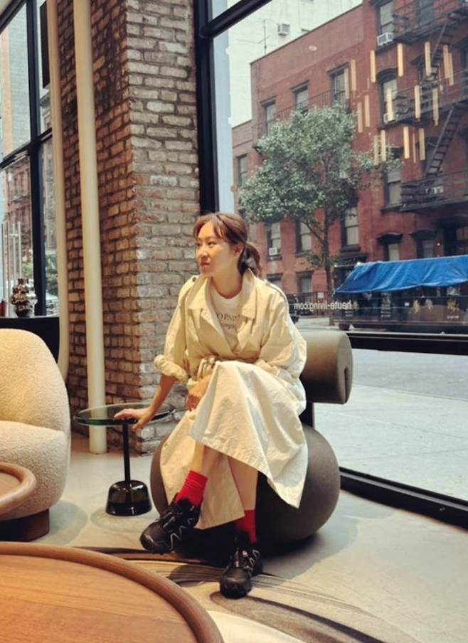공개한 사진에서 공효진은 블랙 반바지에 티셔츠를 입고 트렌치코트를 걸친 쇼핑룩과 하이웨이스트 데님 팬츠에 셔츠를 착용한 산책룩으로 뉴욕에서 제2의 신혼을 만끽하는 모습을 드러냈다.