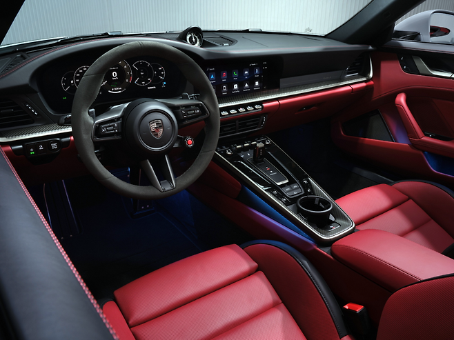 실내는 기존 992 세대 디자인을 기반으로 하되, 터보 S만의 디테일이 더해졌습니다. 스티어링 휠과 계기판, 센터콘솔, 안전벨트에 적용된 '터보나이트' 색상 포인트가 눈길을 끕니다. 카본 파이버와 네오디뮴 장식, 블랙 레이스텍스 헤드라이너는 고성능 모델다운 분위기를 강조합니다. 쿠페는 2인승 기본, 카브리올레는 2+2 구조로 출시되며, 포르쉐 익스클루시브 매뉴팩처 프로그램을 통해 무한대에 가까운 맞춤화도 가능합니다.