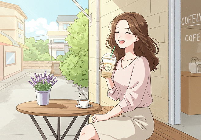 “이런 날씨에 커피 마시니 좋네”
