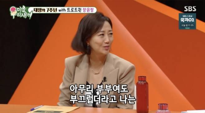 특별 게스트로 출연한 장윤정에게 신동엽은 "'미우새'도 얼마나 가겠어 이런 것처럼 장윤정 결혼할 때도 어떤 사람들은"이라며 장윤정, 도경완 부부의 결혼 10주년을 언급했고, 이에 장윤정은 "이렇게 오래 살 줄 몰랐을 수도 있다"라며 너스레를 떨었습니다.