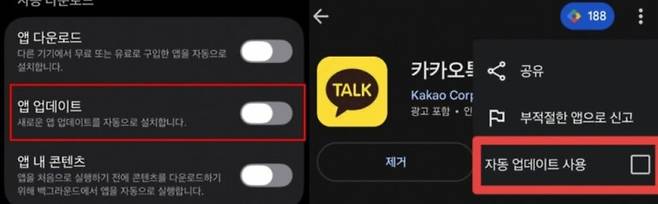 불편함을 호소하는 유저들이 늘어나면서 자동 업데이트와 숏폼 끄기 방법도 공유되고 있습니다. 자동 업뎃을 방지하는 경우에는 카카오톡 자체 설정에서는 업데이트를 끄는 기능이 없으므로, 앱을 다운로드하고 관리하는 스토어(앱스토어 또는 구글 플레이스토어)의 자동 업데이트 설정을 변경해야 하는데요. 안드로이드와 애플 기기의 방법이 다릅니다.