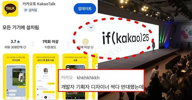 카카오톡 회사 자체서 업뎃 롤백 불가능한 이유 제기돼..블라인드 회사 내부 분위기 폭로하기도