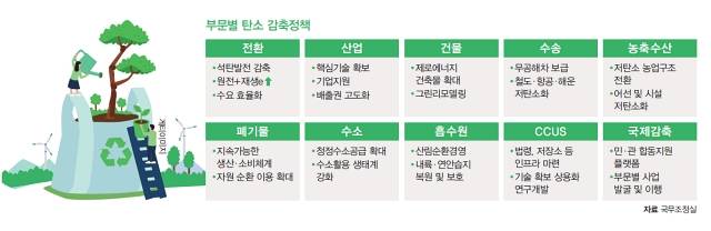 온실가스 배출 감소뿐만 아니라 온실가스를 포집하는 기술(CCUS) 개발도 활성화합니다. 정부는 CCUS를 확보해 NDC를 달성하고 수출 산업화하기 위해 5대 추진 방향과 12개 과제를 밝혔습니다.