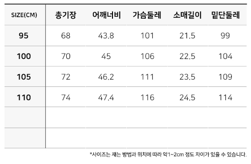 사이즈를 확인해주세요!