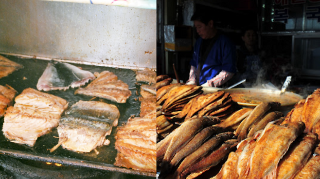 자갈치시장에 이른 아침 도착하면 숯불 위에서 익어가는 고등어 냄새가 코끝을 찌른다. 정성껏 손질한 고등어가 지글지글 익어가며 바삭한 껍질과 촉촉한 속살로 여행자의 입맛을 자극한다.