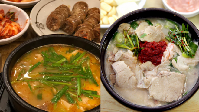 국물의 핵심은 돼지뼈를 오랜 시간 우려낸 진한 맛에 있다. 조미료 없이도 깊은 감칠맛을 내며, 새우젓과 다진 양념으로 간을 맞추면 또 다른 풍미가 완성된다. 식당마다 국물의 농도와 고기의 식감이 조금씩 달라 골라 먹는 재미도 있다.