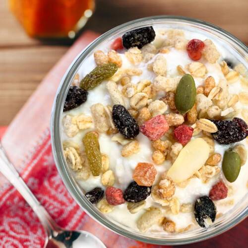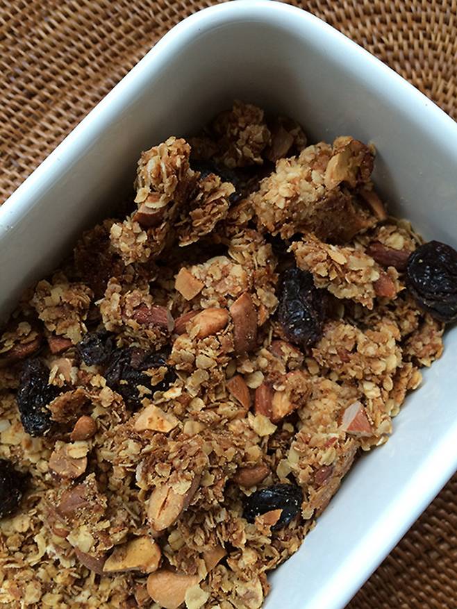 무설탕 그래놀라는 건강식으로 보이지만, 견과류와 오일이 포함되어 있어 예상보다 높은 칼로리를 제공할 가능성이 있음.