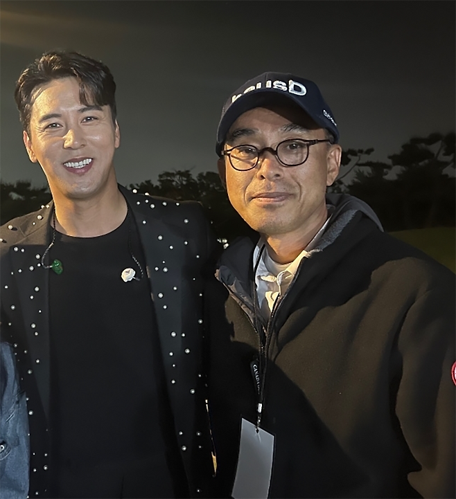 <사진> 그린 콘서트에 출연한 장민호와 카메라 앞에 선 정석천 서원밸리 대표. 서원밸리 제공