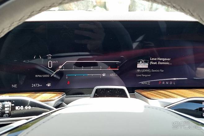 계기판은 곡면 패널을 따라 배치되어 운전자를 향하고 있지는 않지만, 시인성에는 문제가 없습니다. 다만, 큰 화면을 충분히 활용하지 못한 그래픽 레이아웃은 아쉬운 부분입니다.