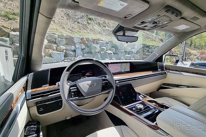 에스컬레이드의 시야는 거의 상용 밴 수준으로 높습니다. 전방의 보닛 역시 성인 가슴 높이까지 올라와 있어 적응하기 전에는 끝이 어디쯤인지 가늠하기 쉽지 않습니다. 하지만 어라운드 뷰, 나이트 비전 등의 기능 덕분에 시야 확보는 어렵지 않습니다.