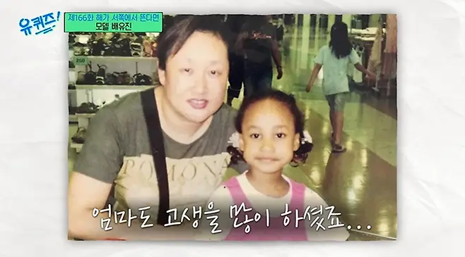 비혼모 가정에서 자라 엄마와 단둘이 자란 배유진은 “초등학생 때 어떤 친구가 멜라닌 색소가 많은 사람은 한국에서 일하기 어렵다는 얘길 했다. 내 몸은 다 멜라닌 색소고 한국 사람들이랑 다르게 생겼는데 어떤 직업을 가질 수 있을까 생각했다”라고 말했다.