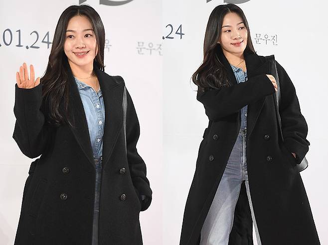 최희서는 더블 버튼 디테일이 돋보이는 롱 기장의 블랙 코트를 착용해 깔끔하면서도 고급스러운 무드를 자아냈습니다.