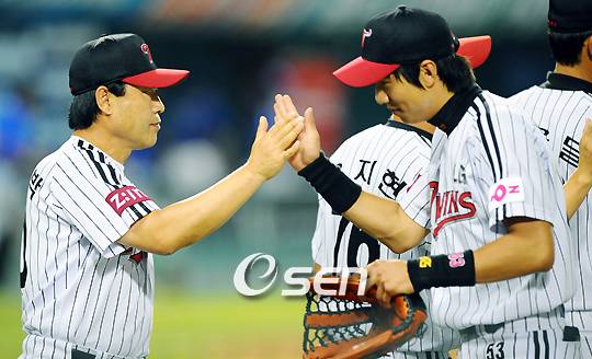 김응룡 감독님과의 인연은 이전부터 이어져 왔습니다. 국가대표 선수로 뛸 때인 1977년 니카라과 세계선수권 우승을 차지할 당시 사령탑이 김응룡 감독이셨습니다. 그리고 감독 데뷔 첫 해인 1996년 한국시리즈서 사령탑으로 맞대결했으나 아깝게 준우승에 머물렀죠. 그 때는 해태 타이거즈가 워낙 전력이 강해 패할 수밖에 없었죠.