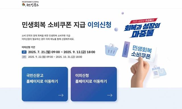 민생회복 소비쿠폰, 이의신청은 국민신문고에서