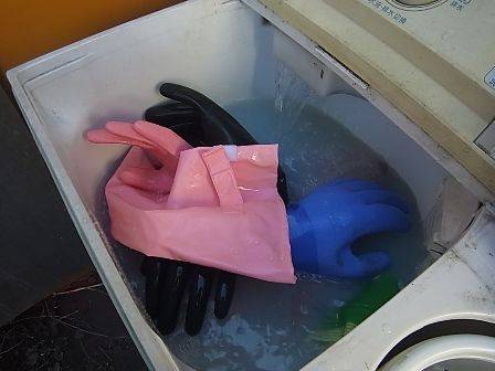 준비: 중형 고무장갑 1켤레(손가락 부분 절단), 비닐봉지 3개(쇠고무줄 묶음).