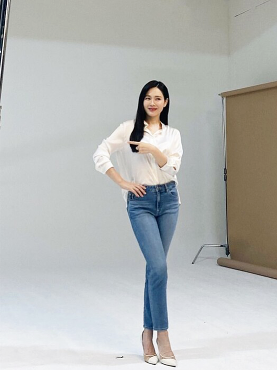 자연스러운 포즈와 밝은 미소 속에서도 그녀의 세련된 스타일 감각이 돋보였으며, 실루엣을 살려주는 슬림한 데님이 전체적인 라인을 더욱 강조했다.