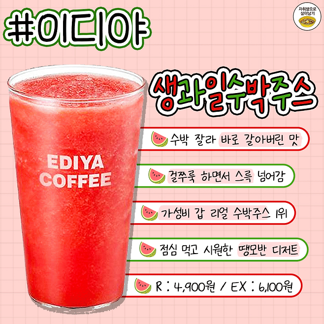 진짜 수박 갈아서 만드는 카페별 수박주스 모음집
