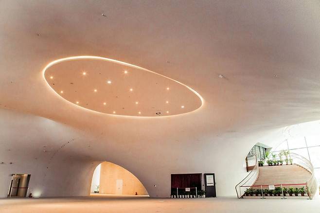 국가 가극원은 대만 최초의 오페라 극장으로 대만에서도 가장 큰 규모를 자랑합니다. 멀리서도 한눈에 들어오는 곡벽 디자인의 건물은 그 자체만으로 오페라와 같은 예술품이라 평가받는다고 하죠. 외관뿐만 아니라 내부 인테리어도 부드러운 곡선 형태로 이뤄져 있어 신비로운 공간에 빠져드는 느낌마저 듭니다.