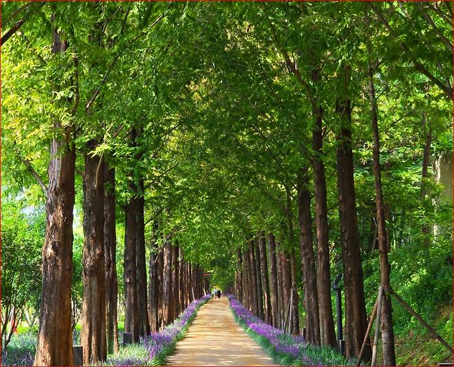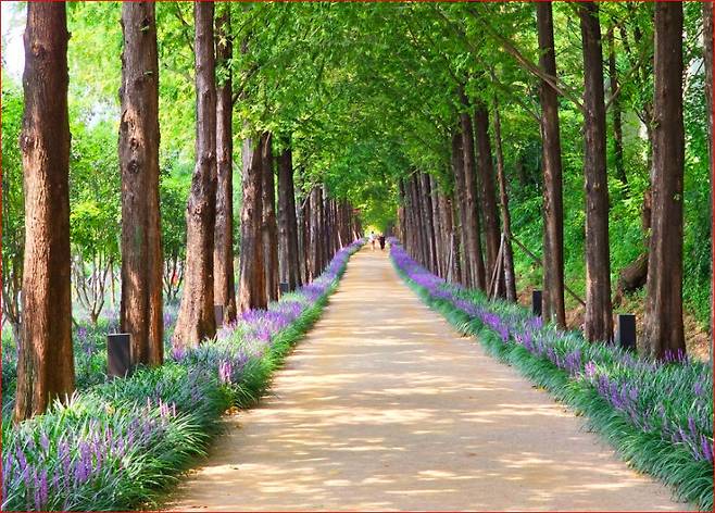 보랏빛 맥문동과 메타세쿼이아 숲길에서 즐기는 맨발 힐링 산책