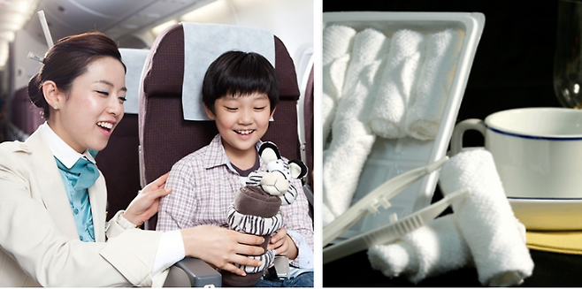 청결은 굉장히 중요한데요. 특히 의자에 붙어 있는 테이블과 팔걸이 부분은 많은 사람들의 손이 닿는 곳이라 눈으로 보기에 더럽지 않더라도 조금 찝찝할 수 있는데요. 물티슈를 요청하셔서 닦고 사용하시면 보다 청결한 환경에서 비행을 할 수 있습니다. 따끈한 물수건 또한 요청에 따라 지급되는데 손을 닦거나 얼굴에 올리면 피로가 조금 풀리는 것 같더라고요. 비행기를 타시면 꼭 한번 이용해 보세요.