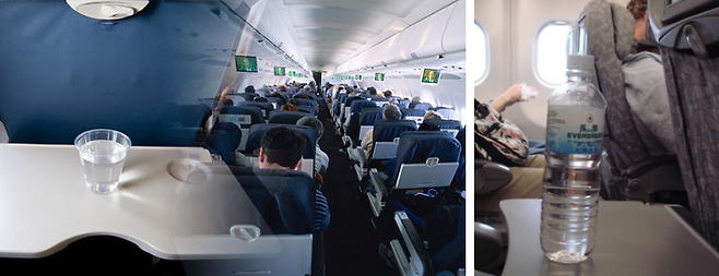 비행기에서 물을 마실 때는 조심하는 것이 좋습니다. 기내에서 컵에 부어 주는 물은 세균으로 가득하다고 하는데요. 물탱크 청소를 매번 하는 것이 아니기 때문에 비위생적이라고 합니다. 요즘에는 생수병을 구비하는 곳이 많다고 하는데요. 물을 달라고 할 때는 꼭 병에 든 물이 있는지 체크해보시길 바랍니다.
