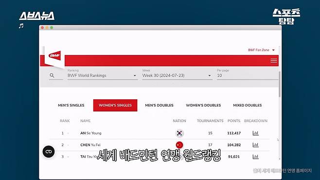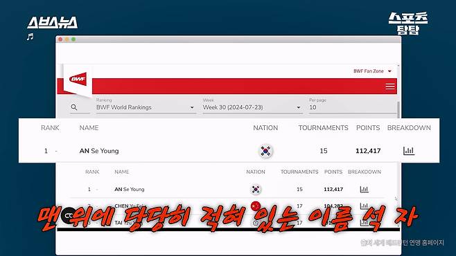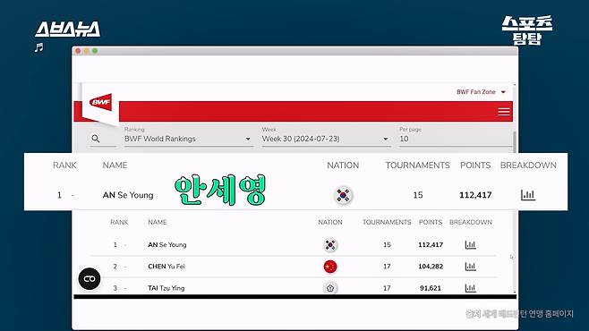 중국 징크스 부수고 세계 랭킹 1위로...안세영의 미친 성장 서사 ㄷㄷ [스포츠 탐탐 : 40편]