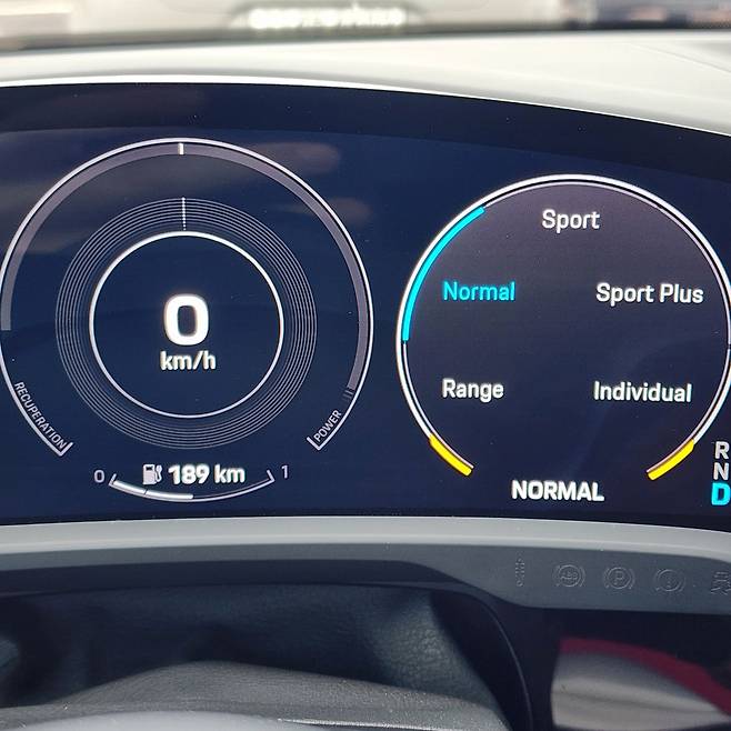 다음으로 노멀(Normal) 모드는 주행가능거리가 조금 줄어든 189km다. 레인지 모드와는 6km 정도 차이가 난다.