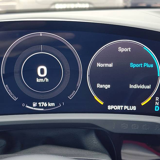 가장 강력한 퍼포먼스를 즐길 수 있는 스포츠 모드로 변경하면 주행가능 거리는 176km로 줄어든다. 레인지모드 대비 거의 20km 정도 줄어든다.