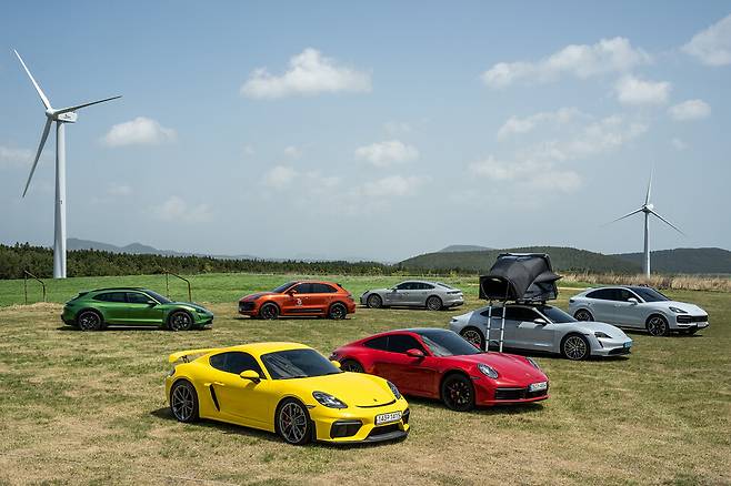 잠시 휴식을 위해 멈춘 곳에서 먼저 달려 나가는 2도어 스포츠카들이 눈에 들어왔다. 제주의 푸르른 자연과 컬러풀한 포르쉐가 너무도 잘 어울린다.