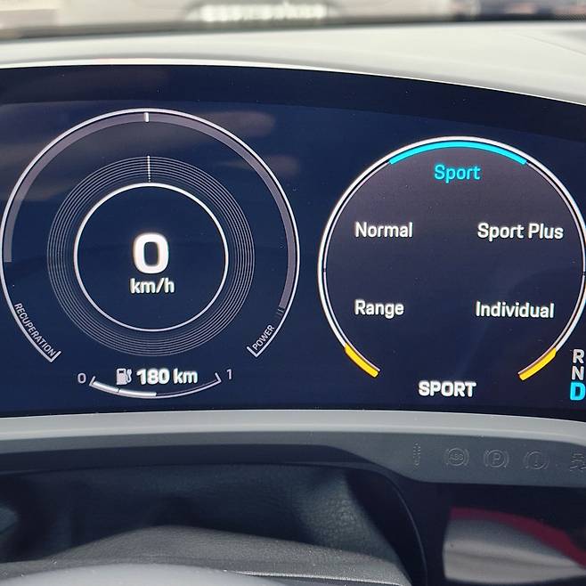 스포츠(SPort)모드로 바꾸면 주행거리는 180km로 뚝 떨어진다. 레인지 모드 대비 15km나 더 짧아진다.