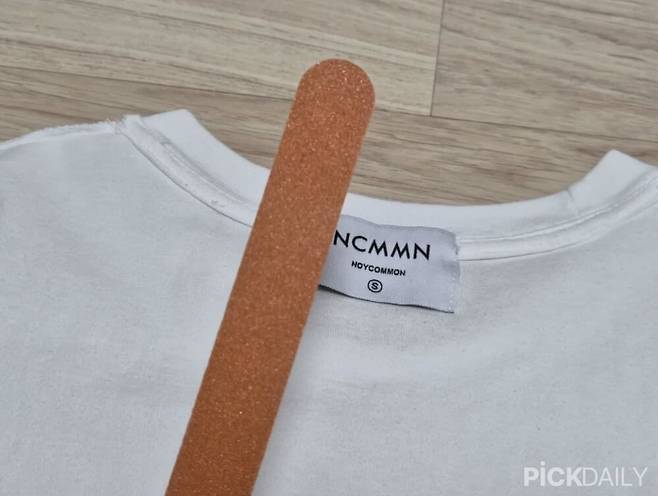 옷 라벨을 손쉽게 제거할 수 있는 비법은 바로 네일 버퍼이다. '네일 버퍼'는 손톱 모양을 정리할 때 사용하는 도구인데 '샌딩 파일', '네일 파일'이라고도 불린다. 이를 이용하면 옷에 구멍을 내지 않아도 손쉽게 제거가 가능하다.