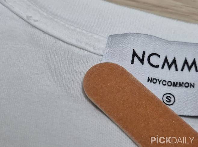 옷 라벨을 살펴보면 윗 부분이나 양쪽에 박음질이 되어 있다. 이를 네일 버퍼를 이용해 살살 문질러주면 된다. 실은 엄청 얇은 선들이 뭉쳐져 있는 형태로 되어 있다. 이를 네일 버퍼로 살살 문질러주면 마치 톱질을 하는 것 처럼 실이 조금씩 끊어진다. 박음질 위를 문질러 어느 정도 실을 끊어졌다면 라벨을 들어 올려실을 빼 내주면 된다.