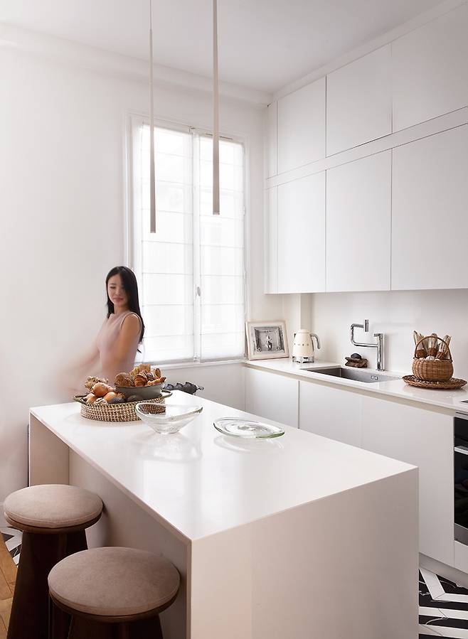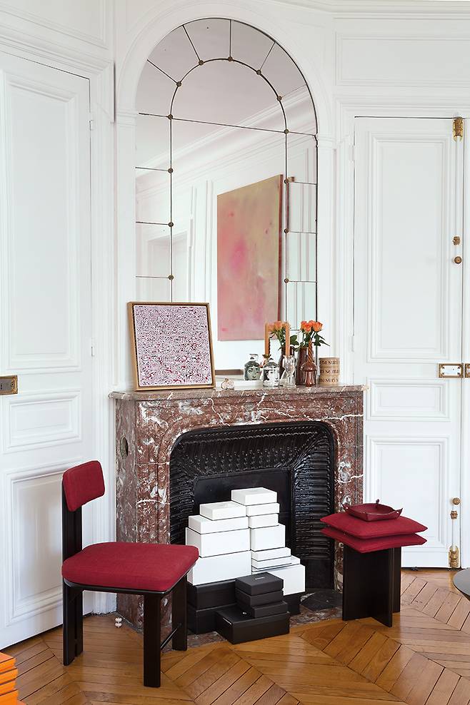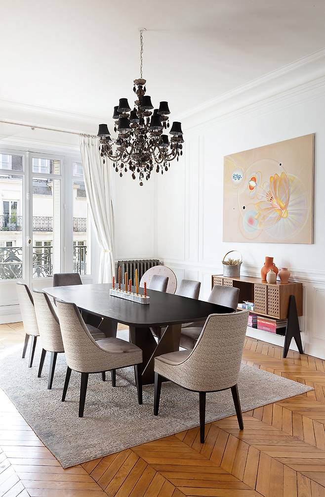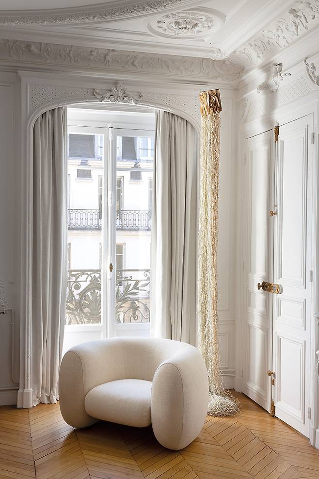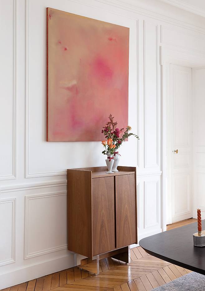 “미국으로 유학을 떠난 10대 초반부터 정말 다양한 아파트에서 살아봤어요. 파리에서만 다섯번째 아파트에 살고 있으니까요. 어머니가 인테리어 디자이너여서 어릴 때부터 공사 현장이 익숙한 환경에서 자라 공간의 본질을 보는 눈이 생긴 것 같아요. 저만의 아파트를 고를 때는 언제나 첫인상이 중요하고요. 지난여름 이사한 이곳은 처음부터 폭 안기는 느낌을 받았다고 할까요. 햇빛이 가득 들어오는 채광에 거실과 다이닝룸 그리고 개인공간이 독립적으로 분리되어 있는 구조를 보자마자 영감이 떠올랐어요. 20세기 거트루트 스타인 파리 살롱이 그러했듯 문화적 배경과 분야, 세대 등의 경계없이 모여 예술적 교감을 나눌 수 있는 살롱 역할이 중요했거든요.”