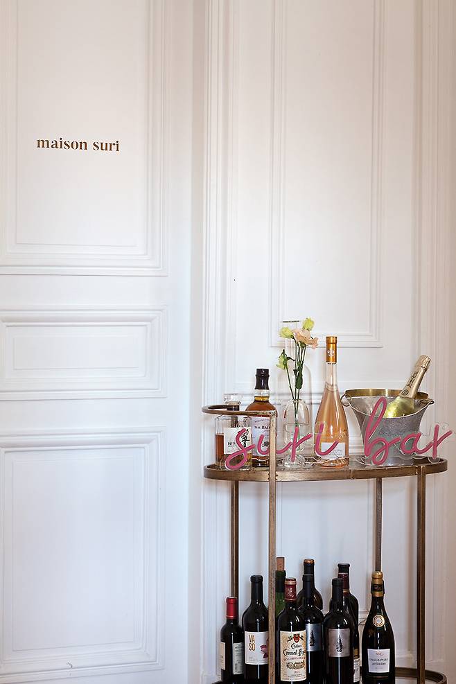 예술 기획 플랫폼인 메종수리 Maison Suri를 창업하고 끊임없이 흥미로운 일들을 벌이는 그녀에게 파리 아파트는 자신의 예술적 지향점을 품고 표현하는 공간입니다. 지난해 프리즈 서울 위크 동안 빌라드파넬에서 연 <MIND:FULL:NESS> 전시에 이어, 올해 아트 바젤 파리플러스 위크를 기념해 그녀는 이 아파트에서 ‘Abundance(풍요)’라는 테마의 기획전을 열었어요. 이들은 수리 자신이 먼저 좋아하고 팔로우하면서 작가들과 소통하고 함께 공감대를 형성해 섭외한 작가들입니다. 여성적 직관, 영적인 다산 그리고 대안적인 형태의 지혜의 샘을 두드리고 탐구하는 동시대 여성 예술가들의 작품을 통해 ‘풍부함’의 다면적인 개념을 파헤치고자 하는 의미인데요. 아이가나갈리 Aigana Gali, 권죽희, 이유, 윤여동 등 세계 여러 도시를 기반으로 활동하고 있는 여성 작가들의 작품이 그녀의 아름다운 아파트 공간과 어우러졌어요.