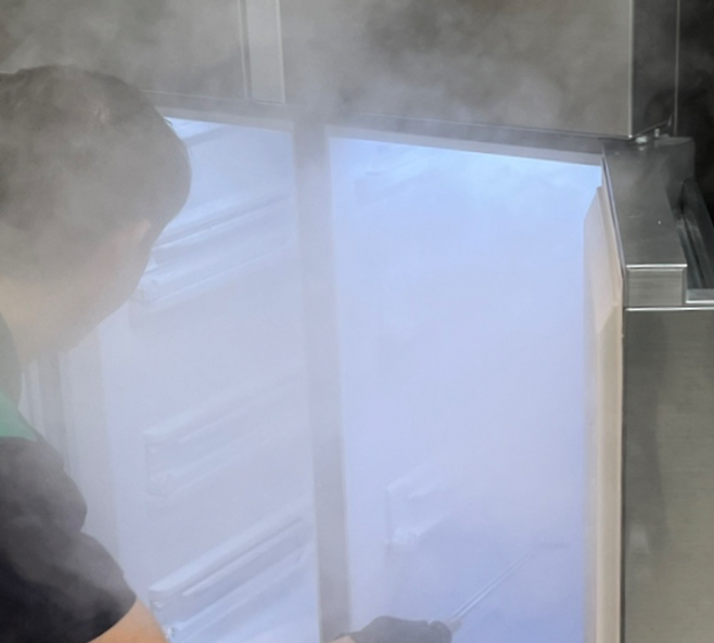 냉동실도 냉장고와 같은 순서로 청소해 주셨습니다. 외관에 있던 스티커들까지 제거하니 처음 모습 그대로의 가전이 탄생했어요.