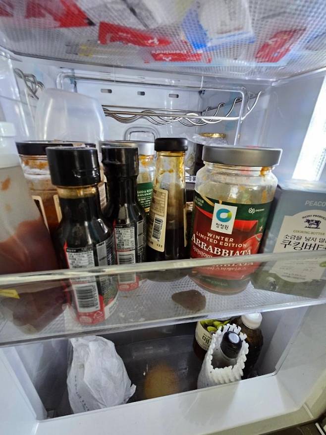 소스 통을 보관하던 곳은 소스가 새어 바닥이 오염되고, 냉장고 맨 위 선반은 초파리 시체가 가득했습니다.