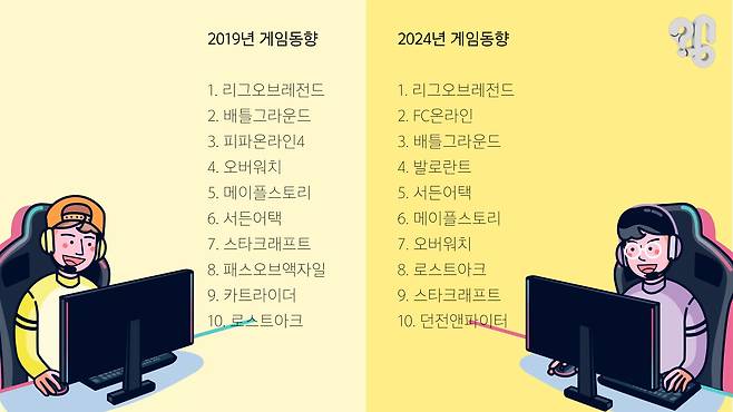 첫번째 이용자층의 ‘고인물’화다. 일단 게임부터가 고인물인데, 5년 전과 올해 6월 PC게임 순위를 비교하면 5위 안에 들어온 신작은 ‘발로란트’뿐이고 이것도 점유율은 7%로 1위 LOL의 5분의 1 정도다. 심지어 1998년작인 ‘한국인의 민속놀이’ 스타크래프트가 여전히 순위권이다.