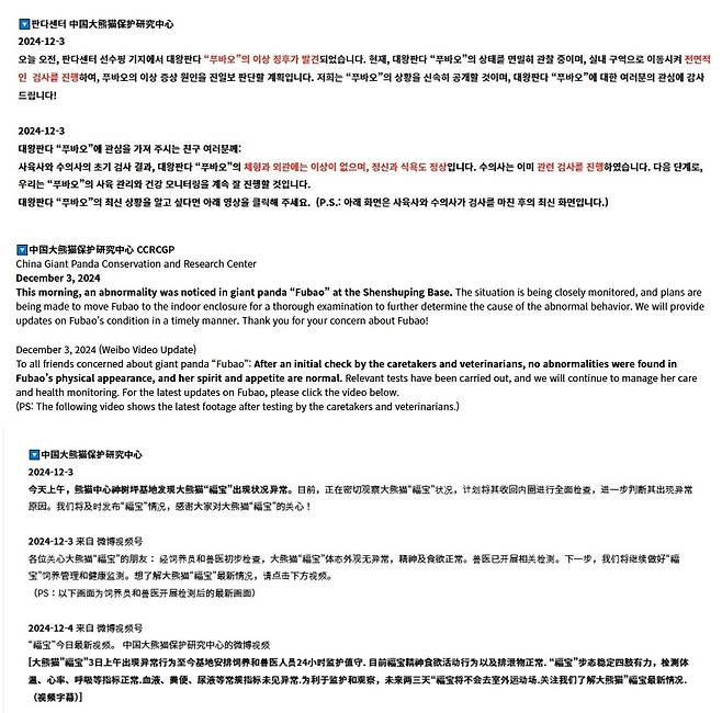 뿐만 아니라 이 팬은 현재까지 센터의 모든 발표 내용을 한국어, 영어로 번역했습니다. 판다기지센터가 중국어로만 소식을 전달했기에 중국어를 모르는 해외 팬들에게 이를 알리려는 의도가 담겨 있었던 것입니다. 이 번역 작업의 특별한 가치는 '소통의 다리'를 놓았다는 점입니다.